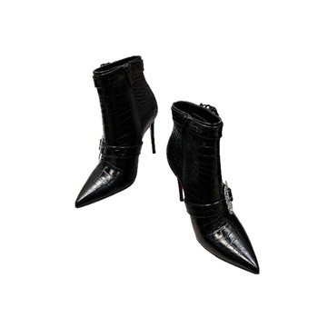 Scarpe eleganti firmate estive pump a punta con fibbia a diamante con cinturino nero sandali con tacco alla moda Sexy di lusso da donna con tacco a spillo sandalo